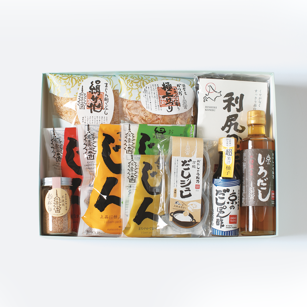| 賞味期限 | 京のしろだし:8ヶ月、万能だしジュレ:1年、天然利尻こんぶ:2年、その他:6ヶ月(すべて開封後要冷蔵) |